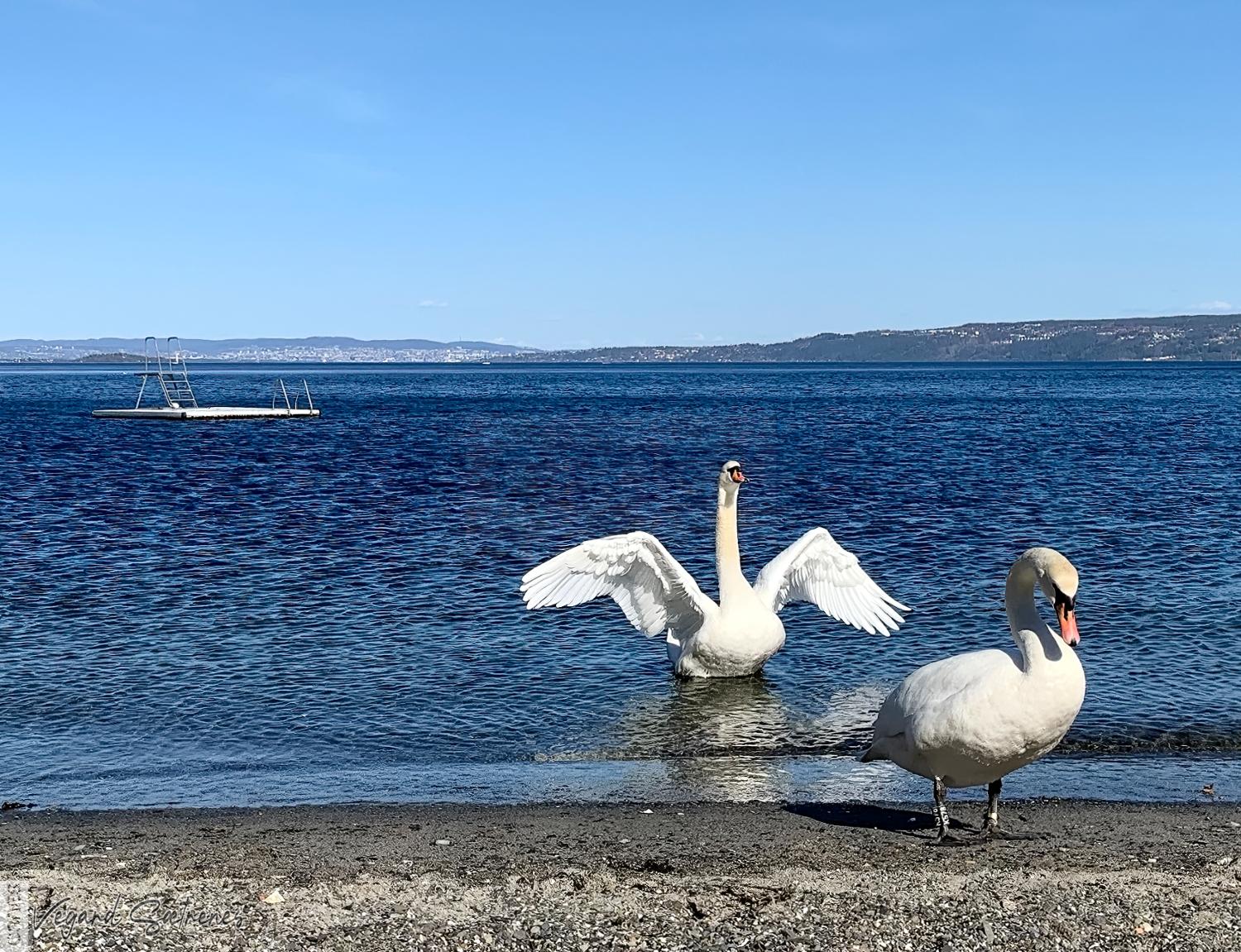 A couple of swans at Sjøstrand beach