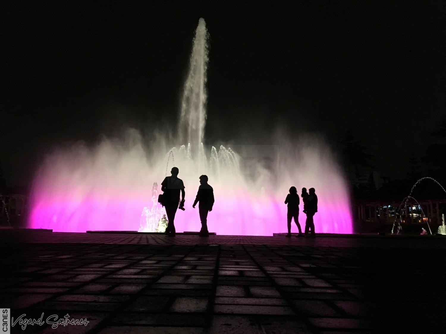 Silhouettes in front of fountain
